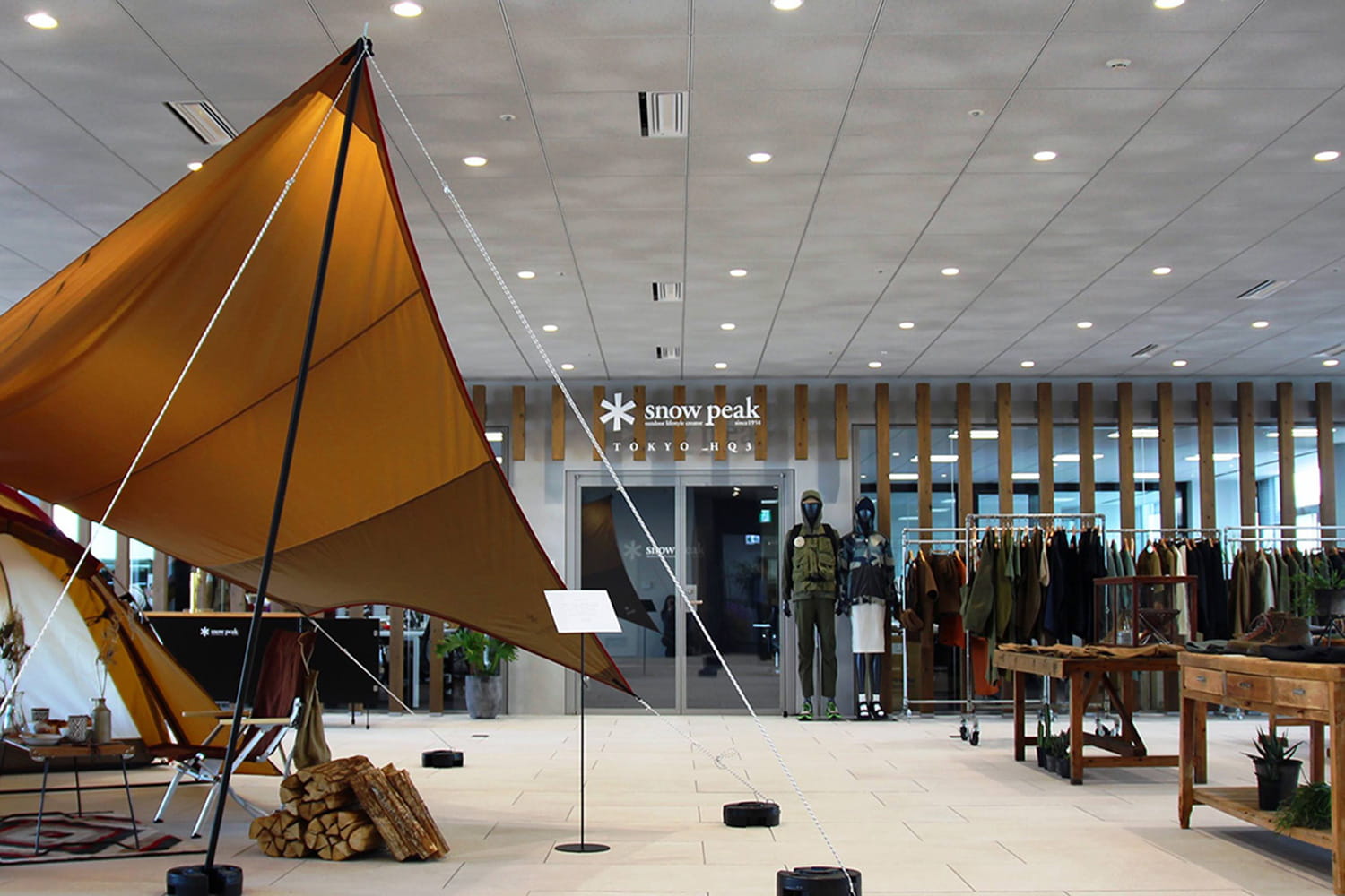 2018年1月より稼働。アパレル事業、営業、関連会社の東京拠点を集約させたオフィスに、展示会や各種イベントを開催するショールームを併設した情報発信拠点。グループ内や事業間のシナジーを生むことはもちろん、スノーピークが提唱する「野遊び」を国内のみならずグローバルに積極的に発信しています。