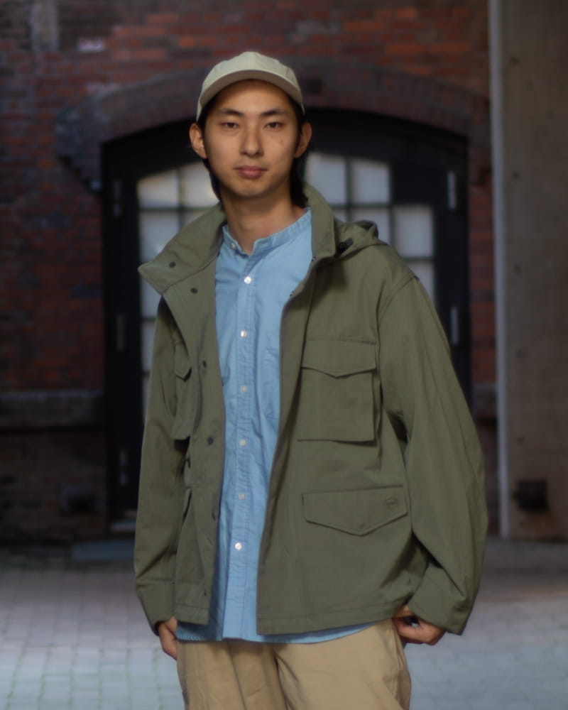 難燃性と耐久性を兼ね備えた、ミリタリーテイストのリップストップ生地を使用。