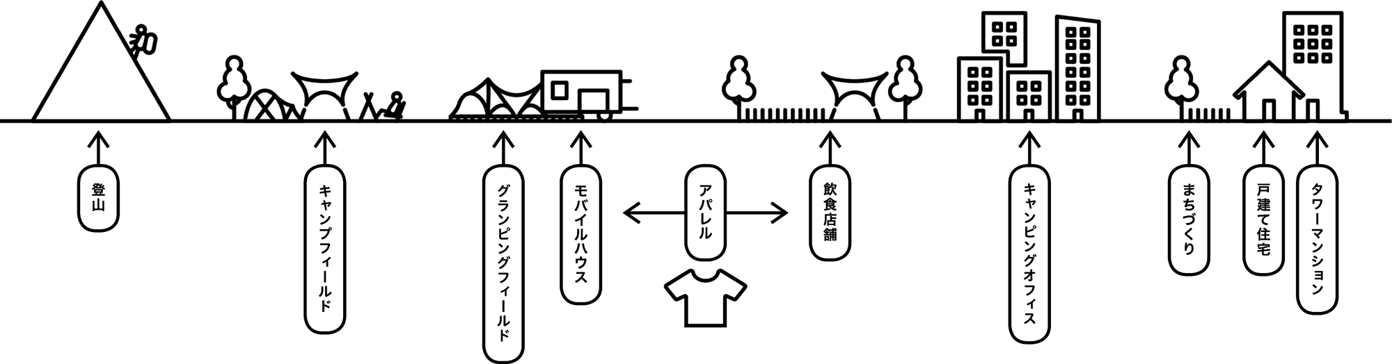 アウトドアの知見を活かしたキャンプイベントやレストラン、グランピング、キャンピングオフィスなど、さまざまな体験事業を提供している。