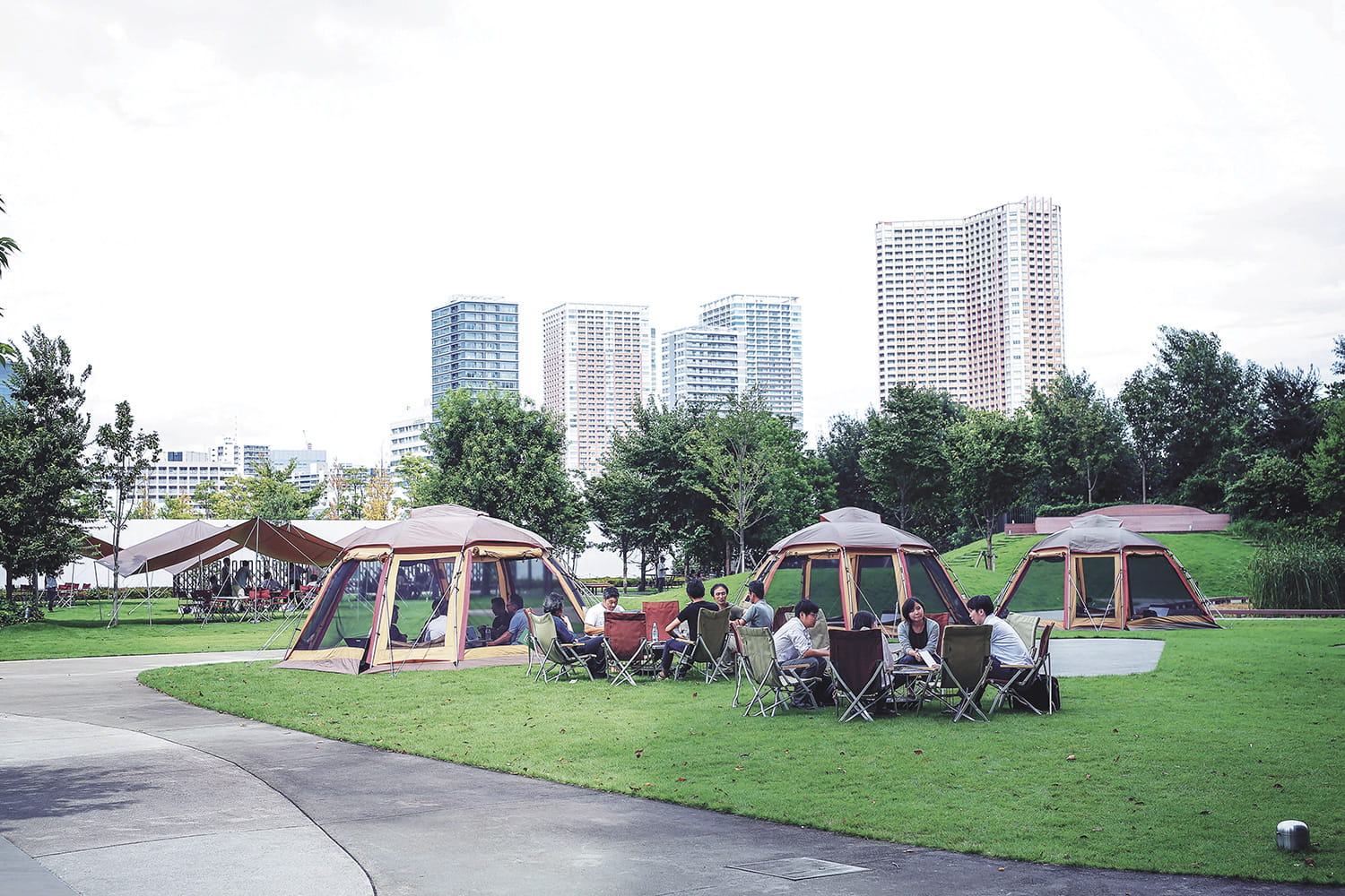 アウトドアシーンを取り入れた室内空間やキャンプによる社員研修など、自然を感じながら快適に働く新しいワークスタイルを提案している。