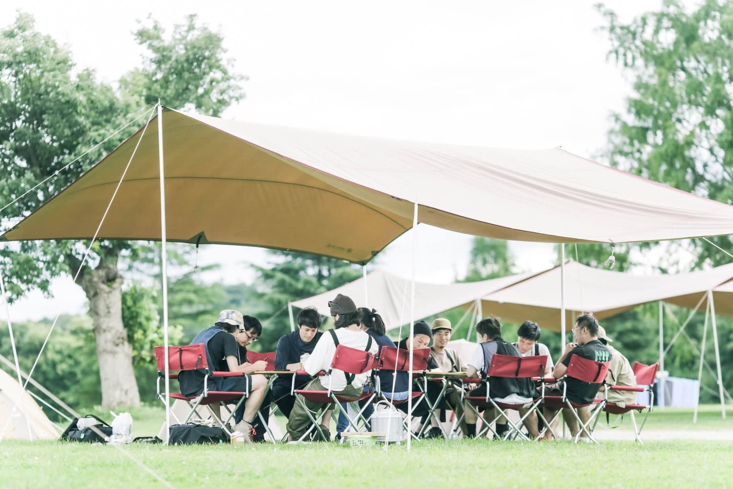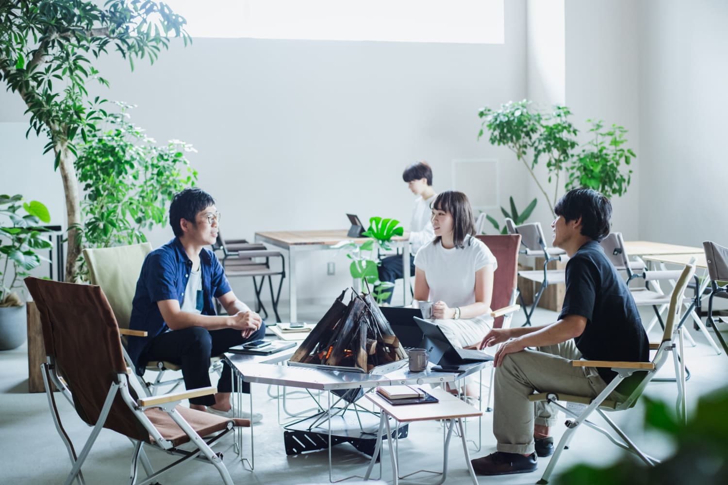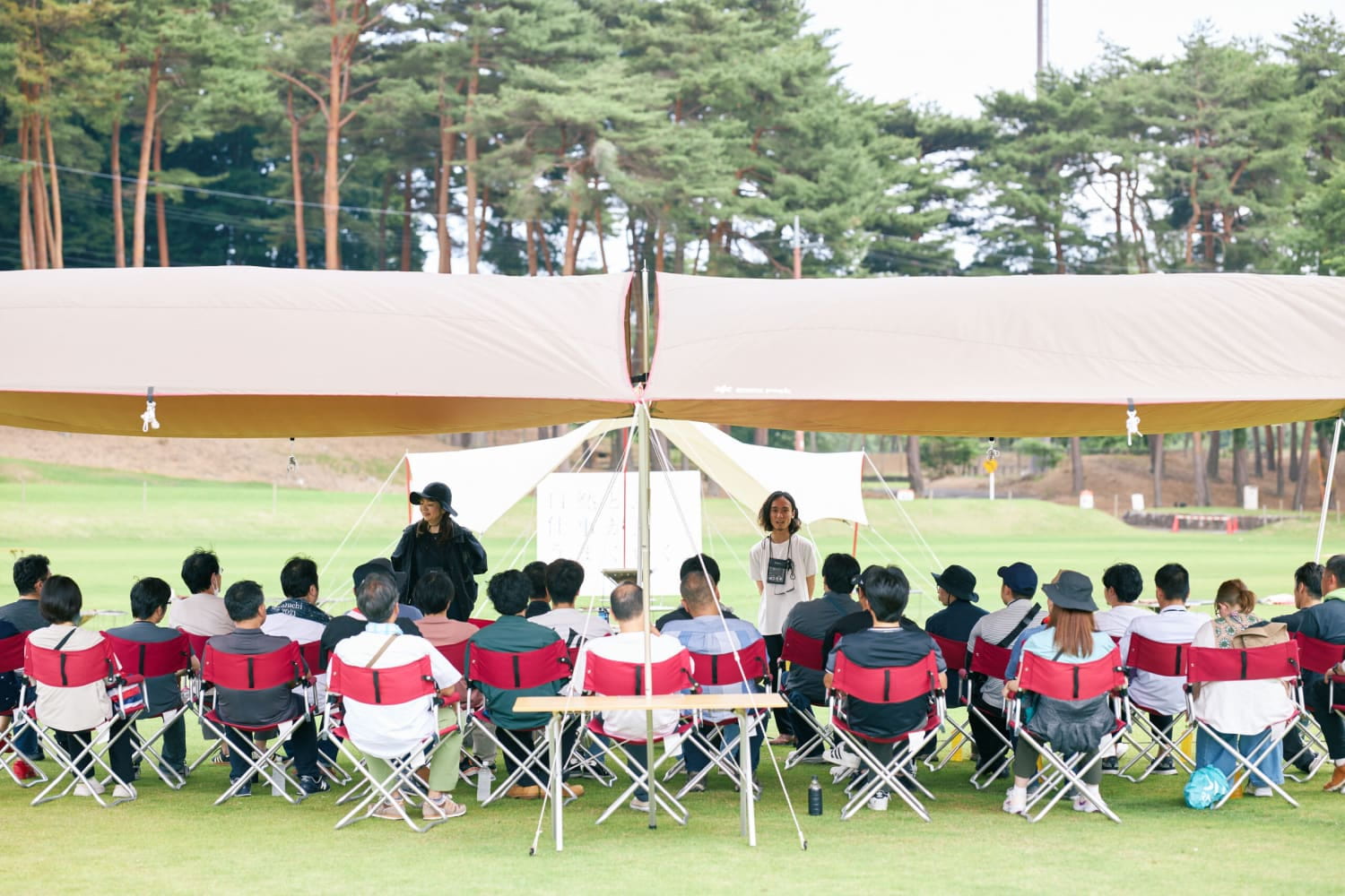 テント、タープ、焚火台など、自然と人、人と人をつなぐスノーピークのキャンプギアをビジネスに取り入れ、クリエイティブな発想や円滑なコミュニケーションを生み出すサービス。大自然から都心部の緑地、オフィスの中まで様々な空間にキャンプシーンを感じられるワークプレイスを提供しながら、導入コンサルティングやファシリテーション、研修までもサポートしています。