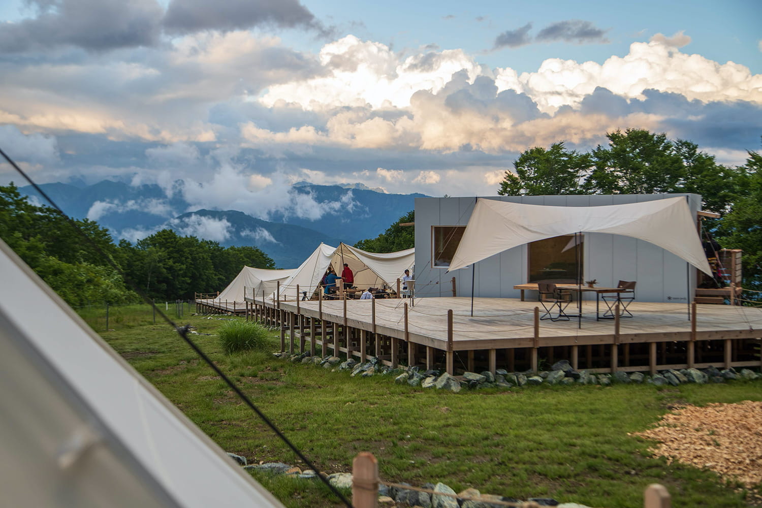 日本有数のスキーリゾートとして名高い白馬・八方尾根の中でも、最もダイナミックな絶景を楽しめる北尾根高原内、標高約1,200mに位置します。雄大な北アルプス3,000m級の山々が目の前に広がる贅沢なフィールドを舞台に、食事、アクティビティまでをも含めたオールインクルーシブスタイルのグランピング体験を提供します。