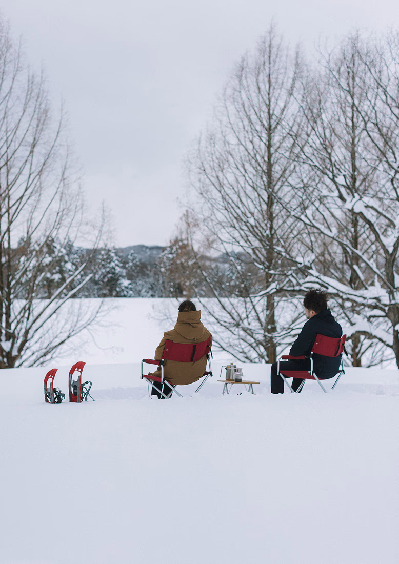 - 雪上では焚火台が沈みやすく倒れやすいため、耐熱の敷物か、ベースプレートを敷いて安定させる。