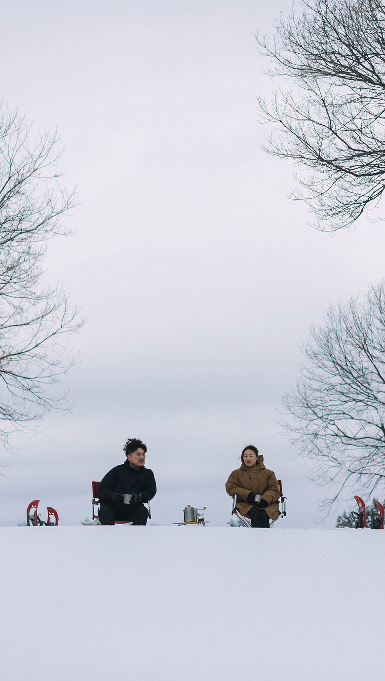 - 雪上では焚火台が沈みやすく倒れやすいため、耐熱の敷物か、ベースプレートを敷いて安定させる。