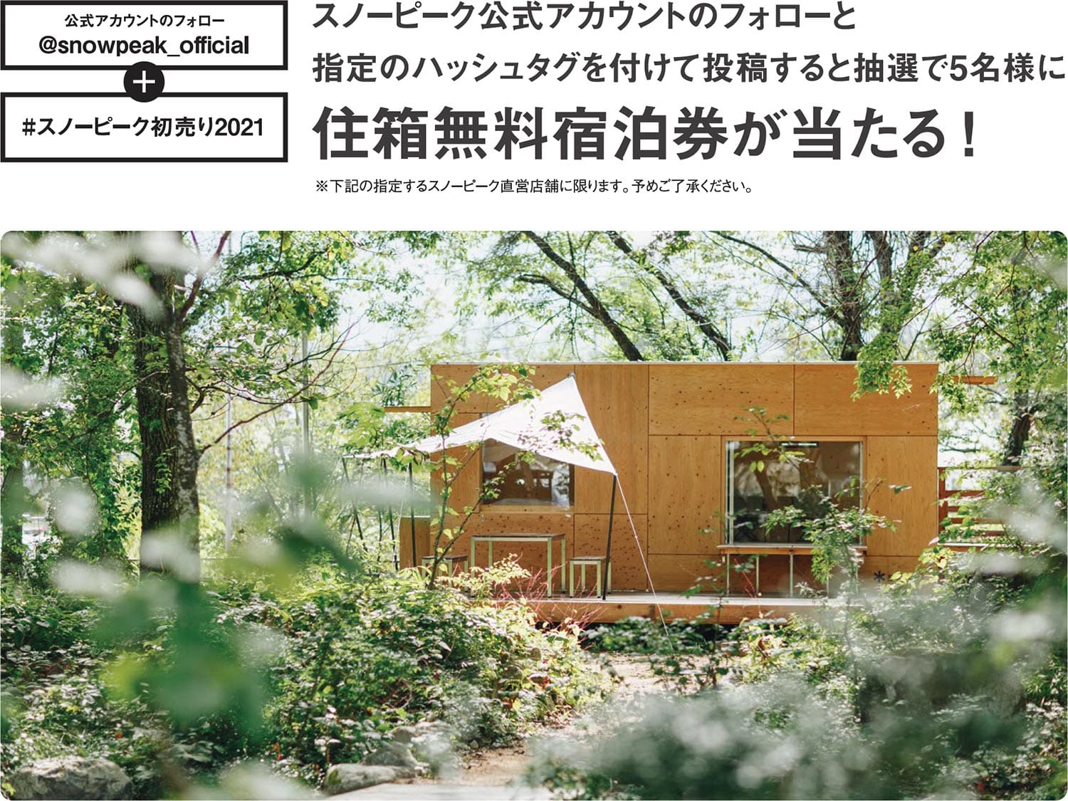 ●有効期限は2021年6月30日(水)まで。 ●ご利用いただけるプランは1泊2日住箱への素泊まりプランとなります。 ●ご利用人数は1組大人2名様までとさせていただきます。(お子様の宿泊可能人数は該当店舗までお問い合わせください。) ●ご利用日は、宿泊券送付後のお電話で事前予約をいただいた、2021年6月30日(水)までの営業日いつでもご利用いただけます。(ただし、各店舗が定める日程及び定休日はご利用はいただけません。) ●スノーピーク運営店舗のみで利用可。(スノーピークヘッドクォーターズキャンプフィールド(新潟県)、スノーピーク十勝ポロシリキャンプフィールド(北海道)、スノーピーク土佐清水キャンプフィールド(高知県)、スノーピークランドステーション白馬(長野県)、スノーピークランドステーション京都嵐山(京都府)、スノーピーク大阪りんくう(大阪府))に限ります。 ●キャンプサイト/手ぶらキャンププラン/ギアレンタル/飲食等を含むプランの利用は含みません ●スノーピークウェイ、スノーピークウェイプレミアム、雪峰祭(春、秋)、その他イベントでの使用は不可。 ●詳細は当選されたお客様へ別途、ご連絡させていただきます。予めご了承ください。