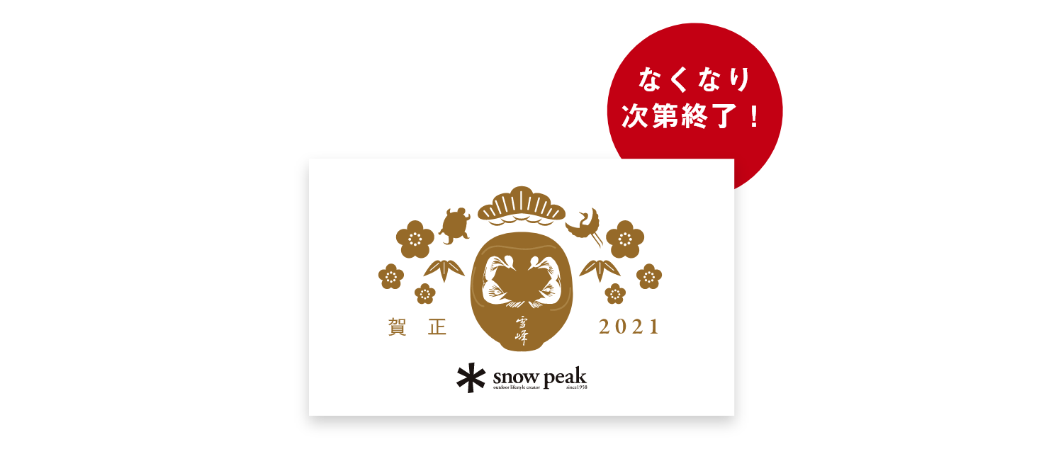 スノーピーク直営店およびスノーピークストアにて購入金額¥5,000(税込)毎に1回(※)くじをお引きいただけます。当たりが出たら非売品の、雪峰だるまをプレゼント!