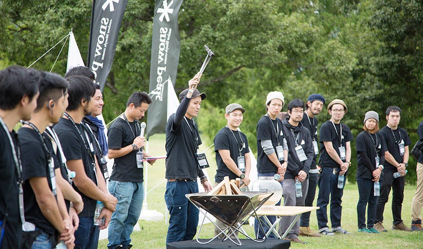 スノーピークは一般の企業と同じように、営業部門、管理部門、企画部門、様々な部門があり、全てのスタッフが Snow Peak Way に参加します。スノーピークのスタッフは皆キャンパーとしてお客様と繋がりたい、コミュニケーションを取りたいと願っているからです。それがスノーピークのお客様に対しての姿勢です。