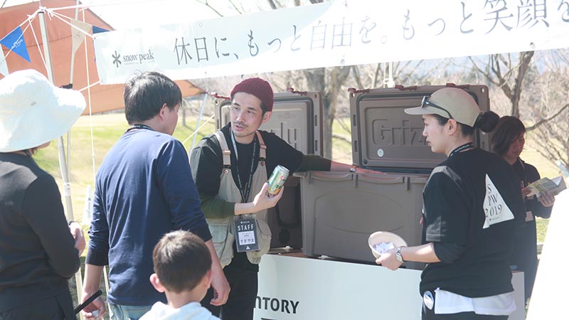スノーピークとサントリーが共同開発した「サントリー南アルプススパークリング」をはじめ、各種飲料をサンプリングさせて頂きます。(無くなり次第終了)