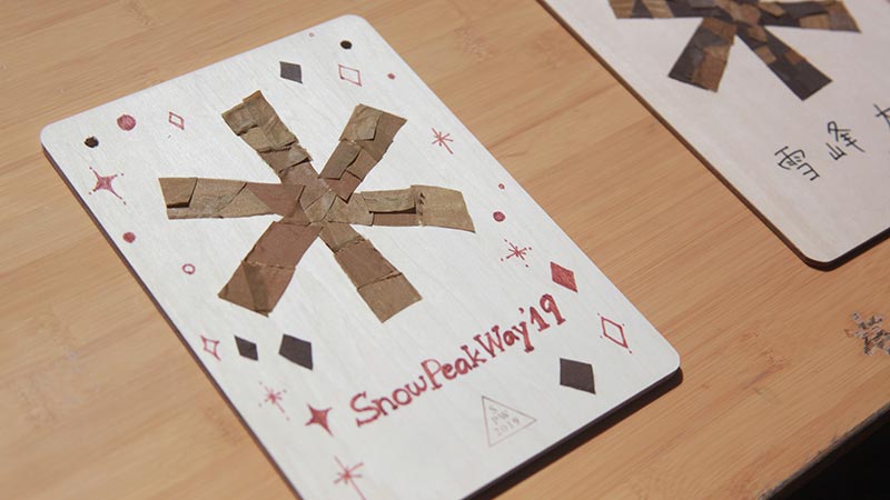 オリジナルの木板に、不要になったテントやタープの生地を貼り付け、ネームプレート(表札)を作るワークショップです。Snow Peak Wayで好評のネームプレート作りが、選べる絵柄が増えてSnow Peak Way Premium Versionとして実施致します。できあがったネームプレートは是非皆様のサイトに飾って、コミュニティの輪を広げましょう。(お一人様1枚)