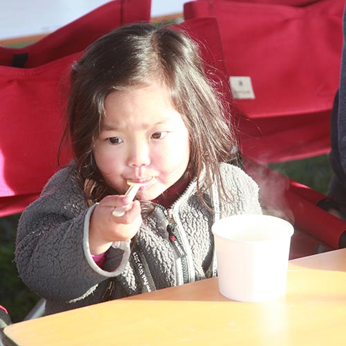 3日目の朝はラジオ体操から始まります。ラジオ体操で体を動かした後は、スタッフ特製のスープをご用意しております。※ラジオ体操は自由参加となります。