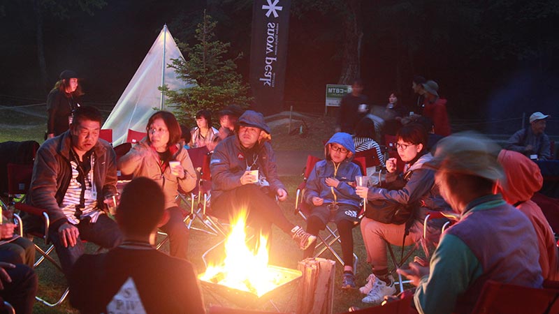 Snow Peak Way の醍醐味のひとつ。ユーザーの皆さまとスタッフが最も親密にコミュニケーションを図ることができる機会です。焚火トーク会場では、各種フリードリンクをご用意しております。なおゴミ削減のため、本年よりプラカップの使用を廃止いたしました。マイカップをご持参のうえ会場までお越しください(ドリンクは無くなり次第終了)。