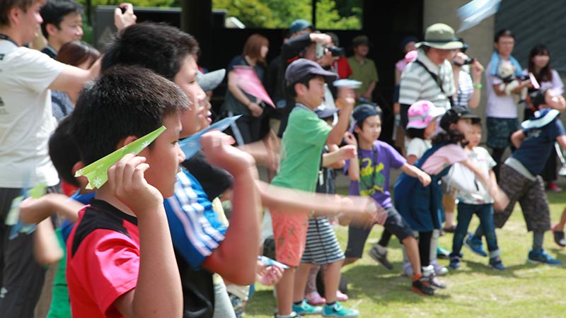 恒例の、大人も子どもも楽しめる紙ひこうき大会。一斉に投げた紙ひこうきを、目標物にどれだけ近づけられるかを競います。上位入賞者には素敵な景品をご用意しております。