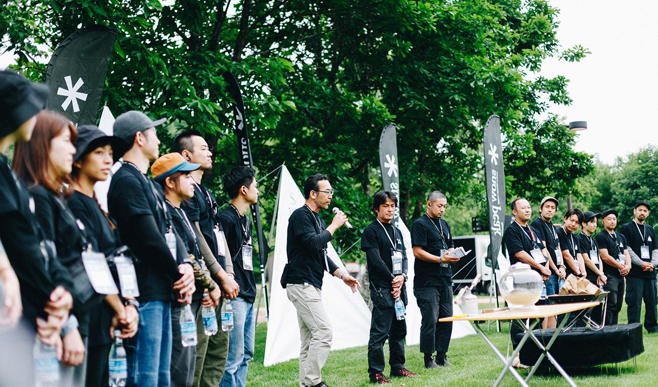 私たちが大切にしていること。それは、ご参加いただくユーザーの皆さまとのコミュニケーションです。Snow Peak Wayでは、そこで生まれるユーザーとスタッフ、またはユーザー同士のコミュニケーションをとても大切なものと考えています。だからこそSnow Peak Wayには、各店舗スタッフだけではなく、営業や管理、企画部門などのスタッフも参加します。それぞれが、一人のキャンパーとして皆さまとつながりたいと願っているからです。大自然のなかで生まれる人と人との本質的なつながりを、皆さまに実感していただけたらうれしいです。