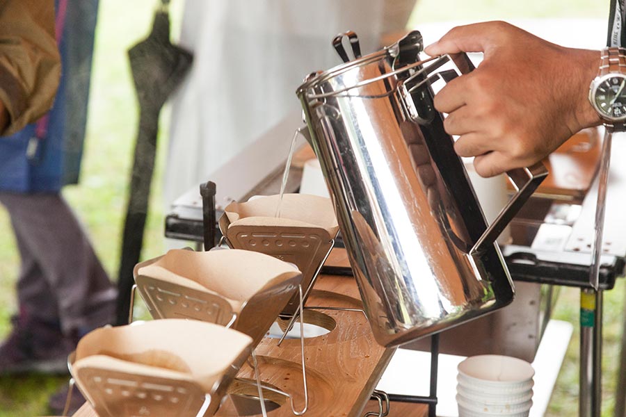 スノーピークのスタッフが、コーヒー、ソフトドリンクを提供させて頂きます。