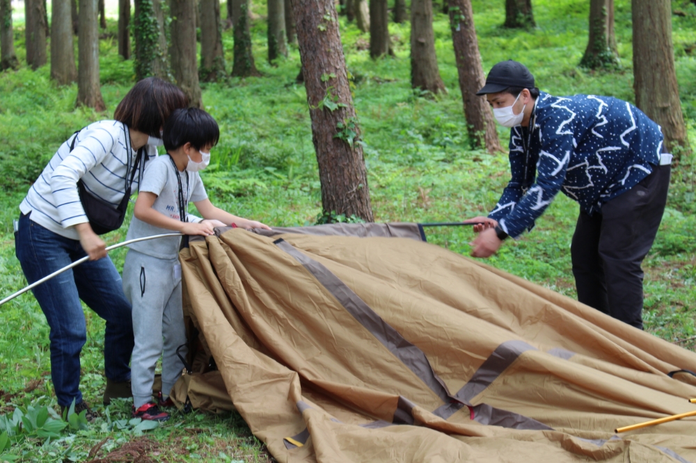 自然の中での体験、地元の方たちやスノーピークの皆さんとの交流はどれも貴重で楽しいものでした。親子で楽しめたこと、体験の中での子供の成長も感じることができてよかったです。キャンプに不慣れでしたが、テントの張り方、片付け方など正しいやり方やコツを教えてもらえたこともよかったです。