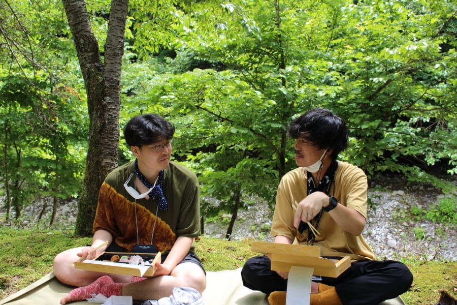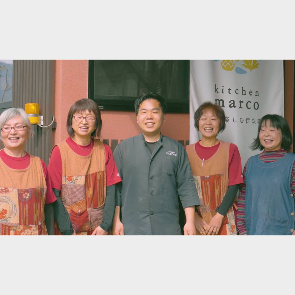 伊吹山麓で育った伊吹薬草と地産野菜を提供する、伊吹伝統ハーブのコンセプトSHOP。四井さん(中央)は、ウェルカムドリンクで提供する「ぎふコーラ」開発にも携わっています。ツアーでは、里山きさら原田さん・Snow Peak Eatと共に、薬草を使った食事をご提供くださいます。