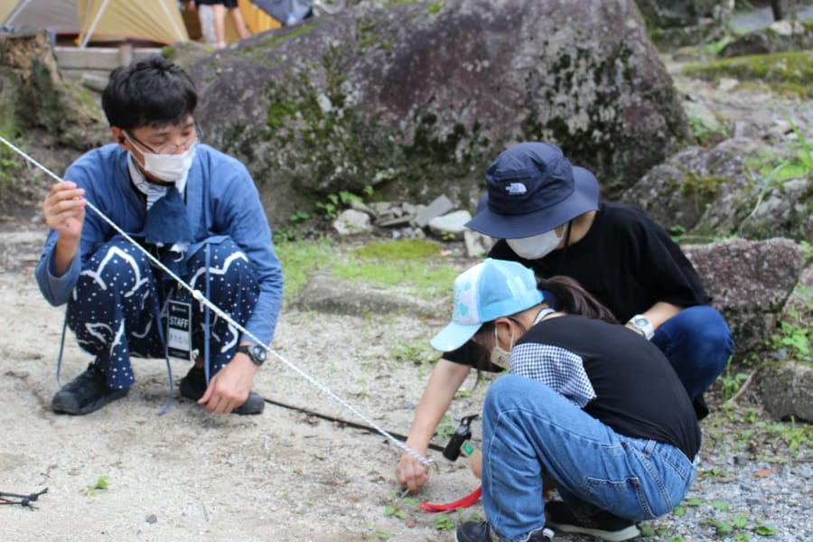 キャンプは初めてだったので設営、撤収等に不安がありましたが、スタッフの方々が丁寧に教えてくださり、小学生の娘二人も積極的に楽しんで手伝っており、みんなで力を合わせて設営する喜びを家族で分かち合うことができました。