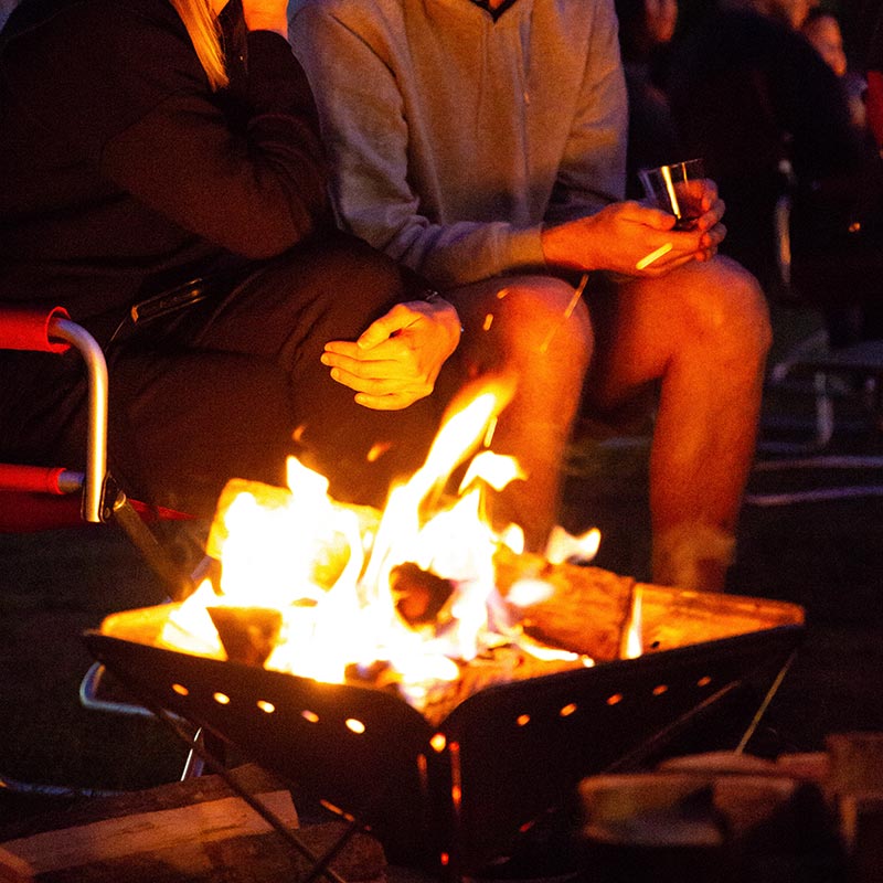 キャンプの夜は何といっても焚火。特別な場所での、特別な時間をお楽しみください。
