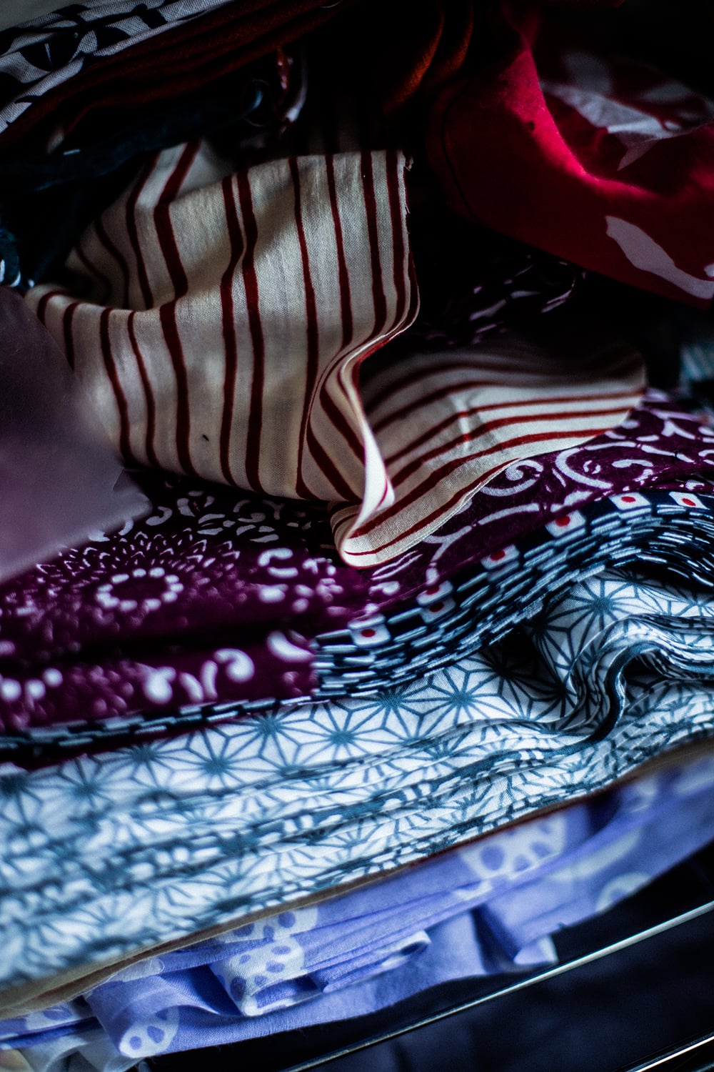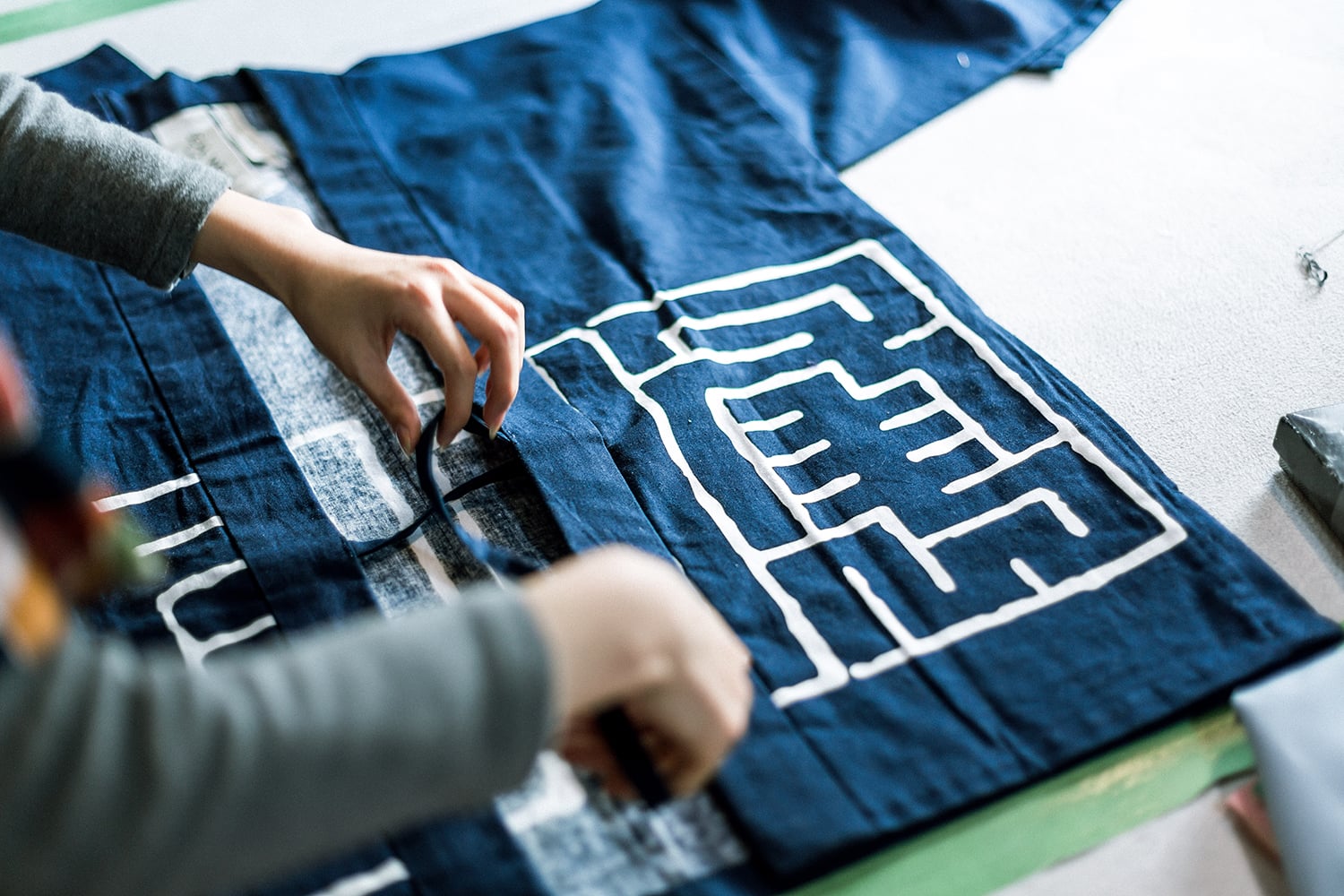 京屋染物店が半纏や祭り衣装に施す伝統的な仕立てには、使いやすさを考え抜いて生まれた職人の知恵や、纏う人への想い、祈りが込められています。まっさらな素材に色や模様が付き、伝統的な仕立てが施されるまでの一連の職人の作業を、実際に工房で見学します。