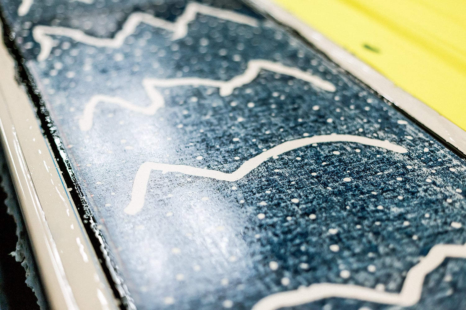 さらに、実際に職人さんたちに教わりながら、本格的な本染手捺染(ほんぞめてなっせん)にも挑戦。アスタリスクマークをあしらった名入れ手ぬぐいのデザイン、染色を体験していただきます。