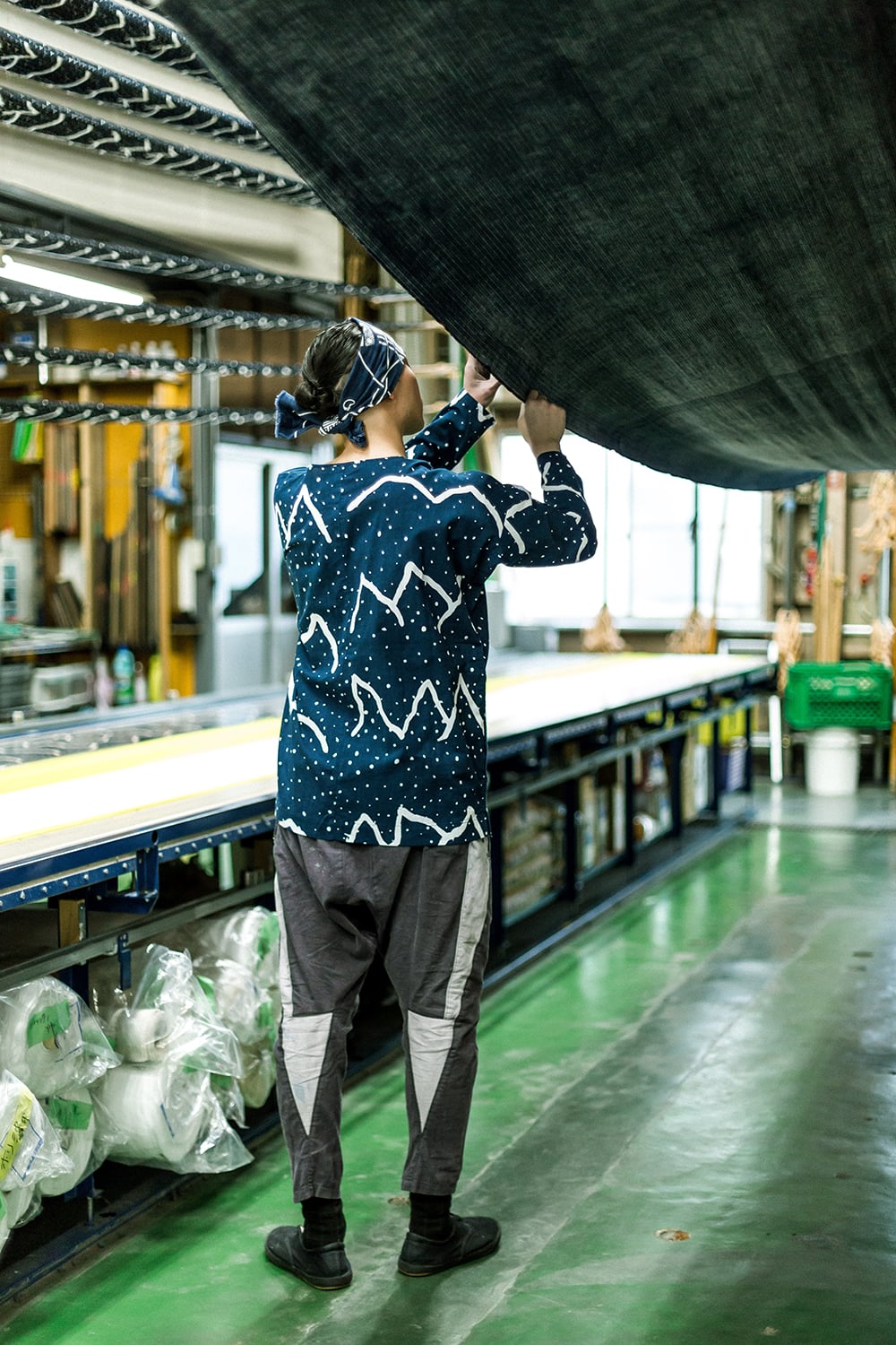 岩手県一関市の「京屋染物店」との出会いから誕生したLOCAL WEAR IWATE。いにしえの時代から受け継がれてきた文化や技術を未来へつなげようと活動するその姿に共感し、日本の祭り衣装をスノーピークの世界観に落とし込んだLOCAL WEAR IWATEを共同でつくり上げました。