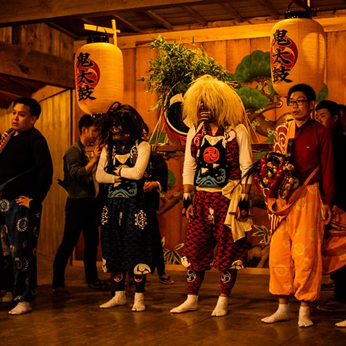 佐渡の伝統芸能を世界に向けて発信している芸能団体。ツアーの夜には、佐渡の魂とも言える「鬼太鼓(おんでこ)」を門付け(披露)してくださいます。
