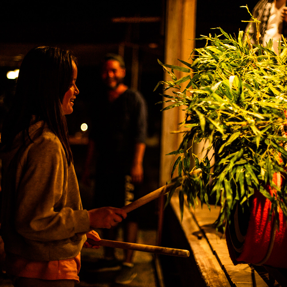 島に伝わる伝統芸能を観て、焚火を囲みながら島の人々と語らう。