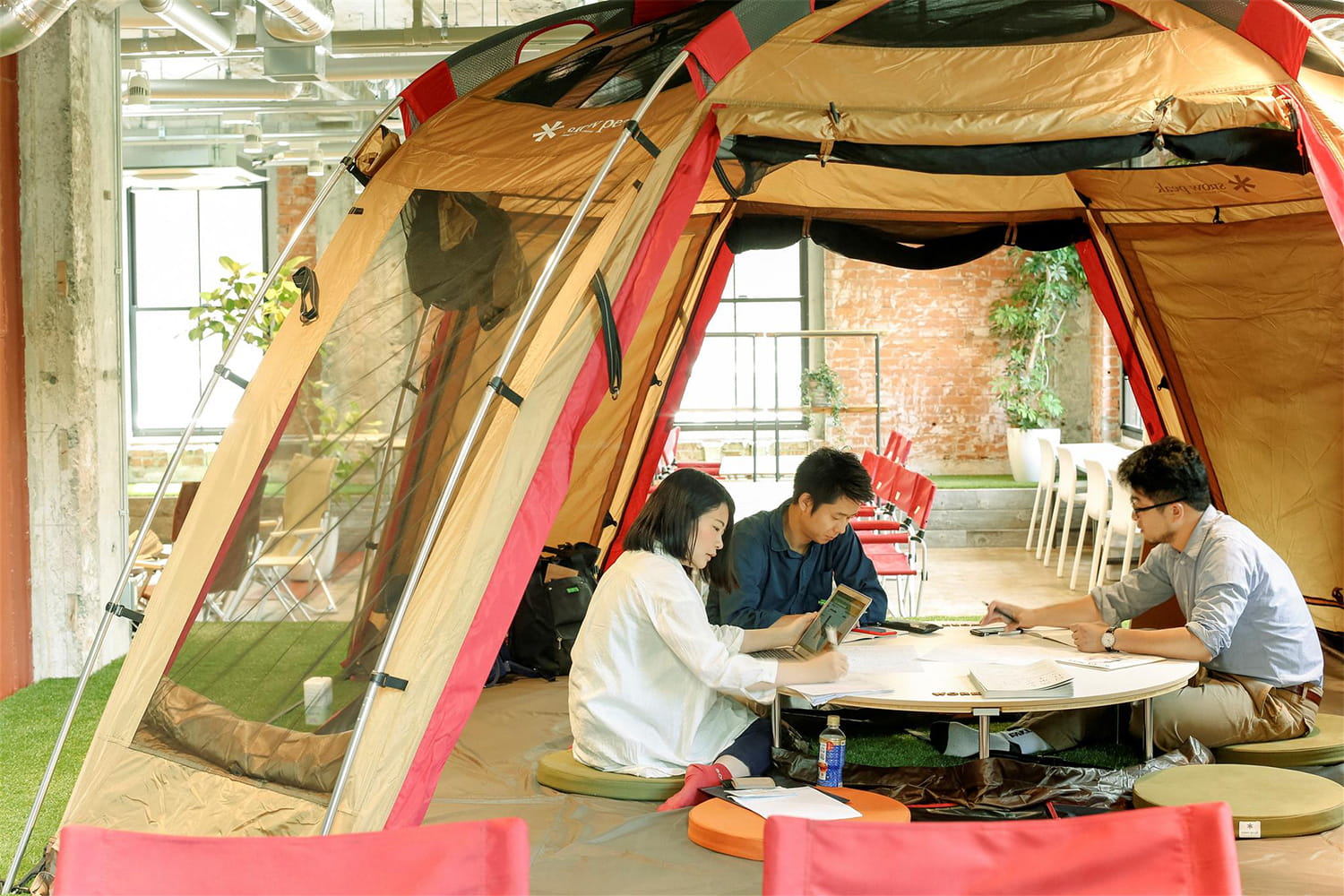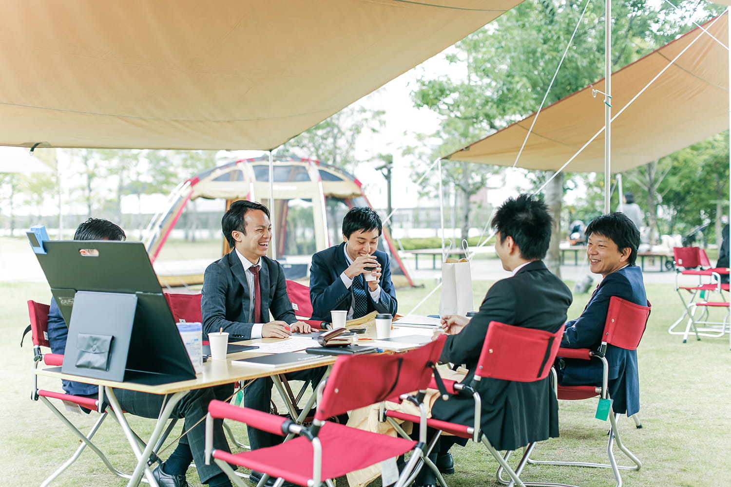 テントの中では自然な笑顔が増えるから、上司や部下といった立場を超えて、目的達成のために前向きで思い切った意見が飛び交います。