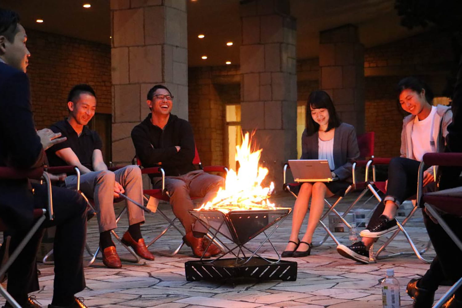太古の昔から、人は揺らぐ炎を見つめて心を開き、想いを語り合ってきました。見つめるだけで癒される焚火の効能を、オフィスのチームワーク活性化に役立てない手はありません。