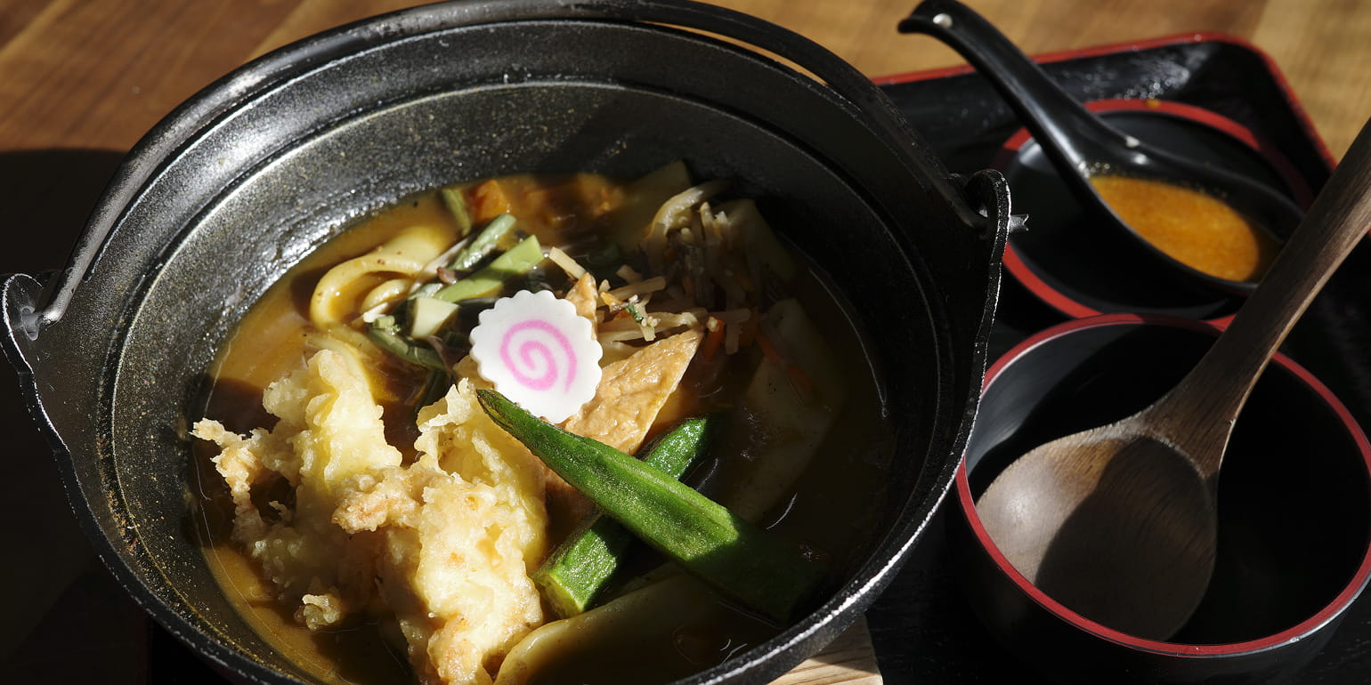 カヤックを満喫した後は、湖畔の商店街にて昼食を。地元名物の「お切込み(煮込みうどん)」のほか、各店自慢のメニューを提供しています。気になるお店を選んで、大沼を眺めながら疲れた身体を休めましょう。