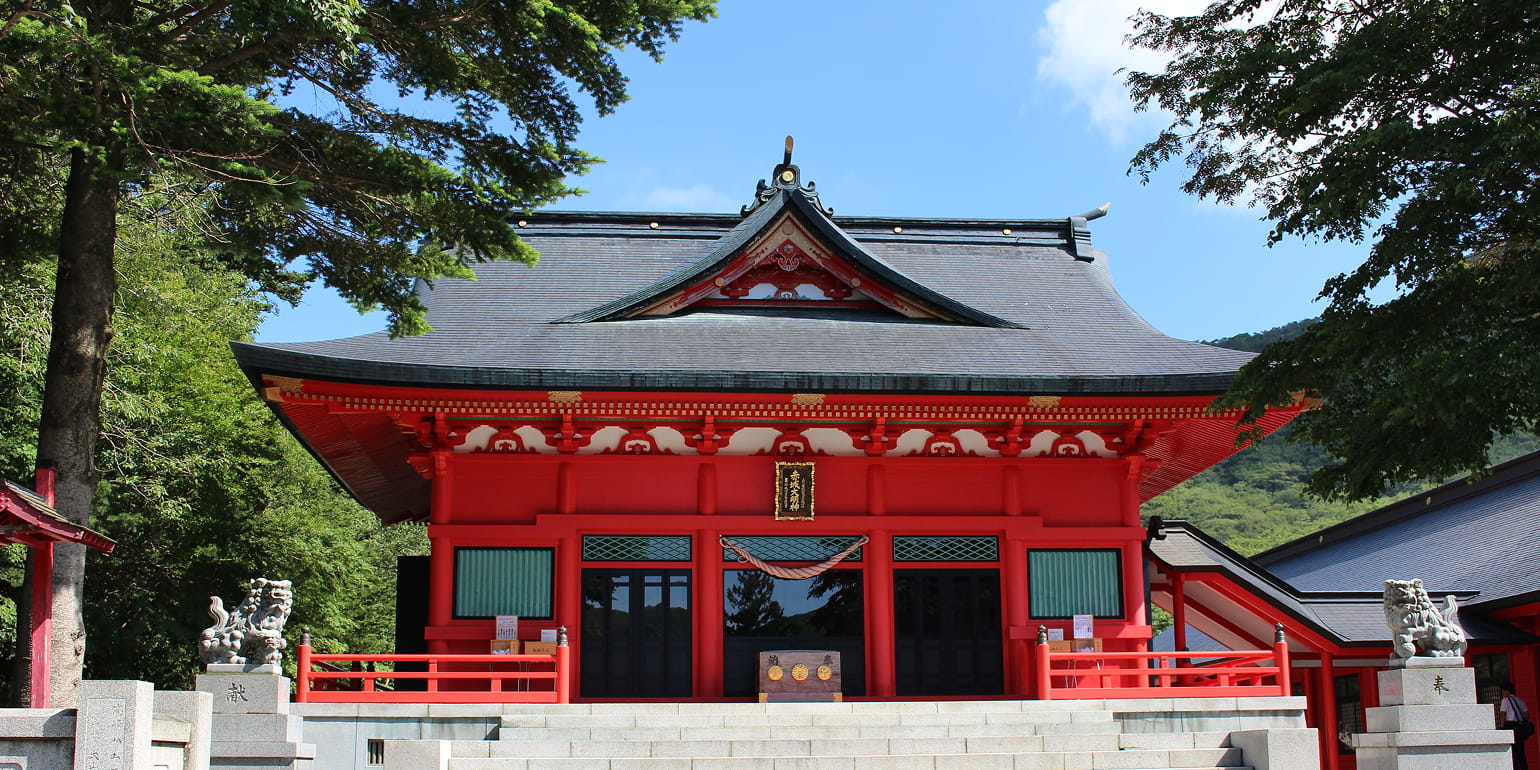 お腹を満たした後は、大沼湖畔を散策。赤く湖上に伸びる啄木鳥橋(きつつきばし)を渡って、パワースポットとしても知られる「赤城神社」へ。ワカサギ型のおみくじも要チェック。参拝後は商店街に戻ってお土産を探してみましょう。