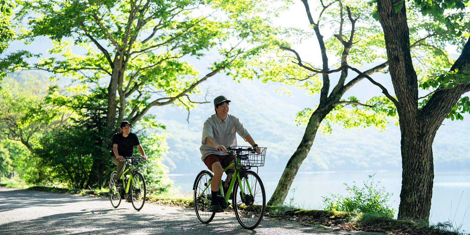 標高約1,350mの高地にある赤城山の大沼湖畔は、市街地から約8~10℃ほど気温が低く、涼やかな気候です。自転車で周辺のポタリングを楽しんだり、湖畔の木陰でのチェアリングやピクニックもおすすめです。