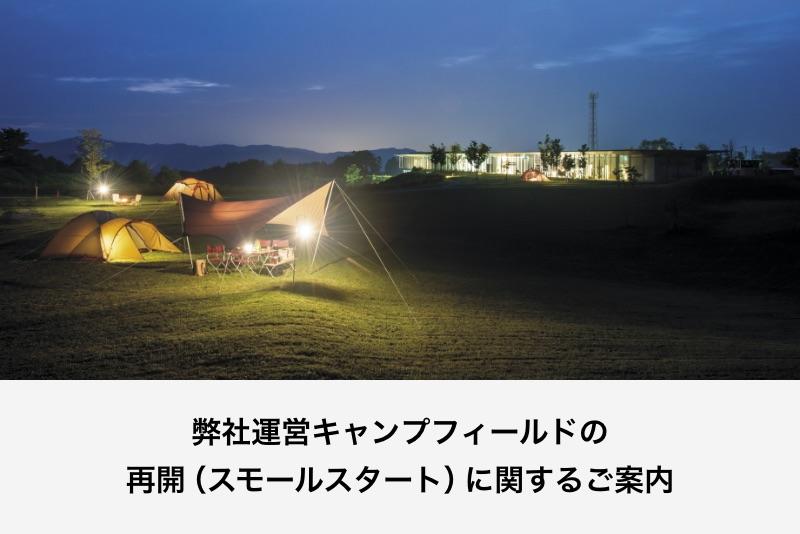 弊社キャンプフィールドの再開(スモールスタート)および 直営店の一部営業再開について