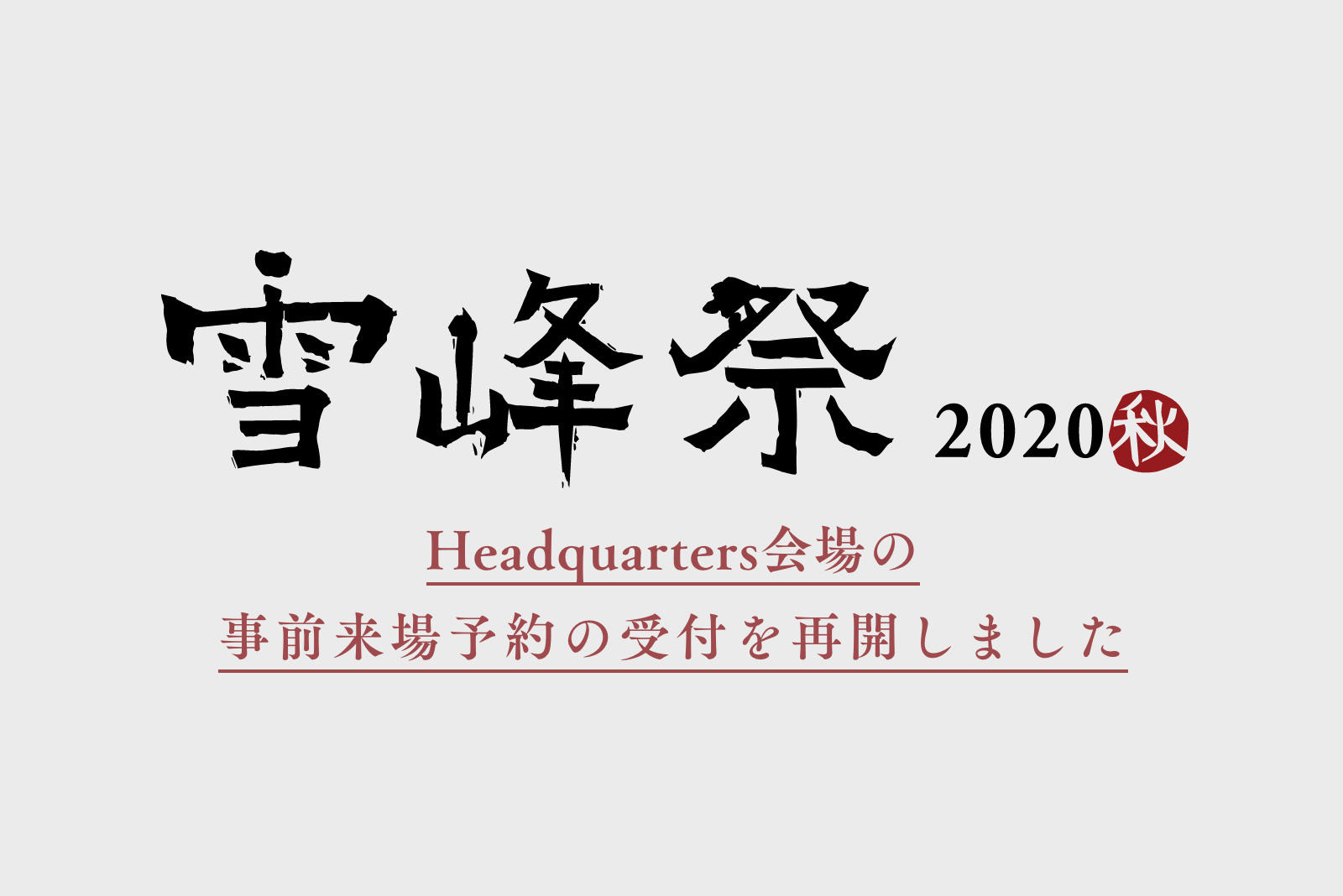 「雪峰祭 2020 秋」Headquarters会場の事前来場予約の受付を再開いたします。