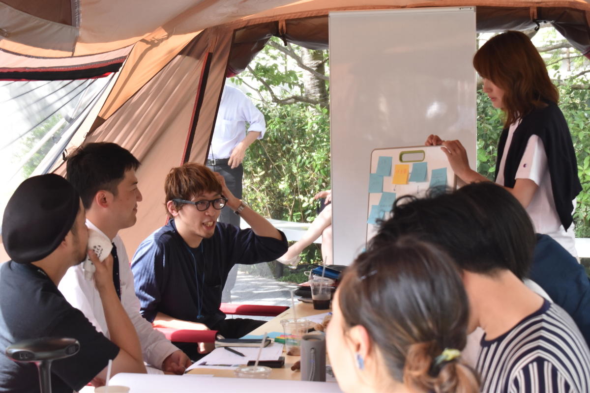 テントなどのキャンプ設備を利用したアウトドアオフィス環境
