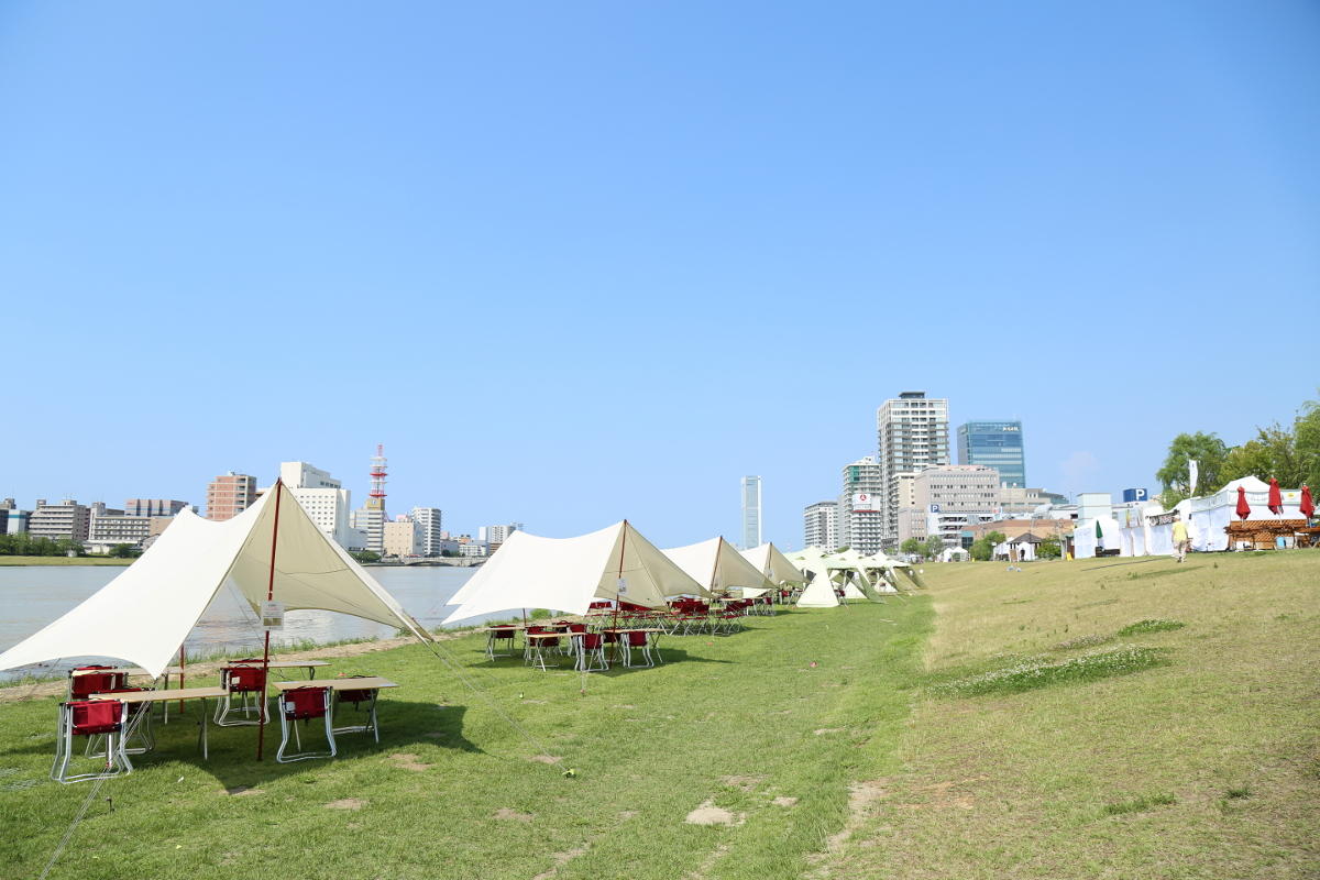新潟市では2016年から、新潟市中央区の信濃川河川敷を活用したイベント「ミズベリング信濃川やすらぎ提」を開催しています。「ミズベリング信濃川やすらぎ堤」は、都市河川における水辺の新しい活用の可能性をつくり出そうと国土交通省が進める「ミズベリングプロジェクト」の一環として行うもので、地元食材を提供する飲食店が出店するなど、幅広い世代が楽しめるイベントとして地域に定着しつつあります。 スノーピークは昨年から2度にわたり、同イベントの区域全体の管理・運営を受託しており、アウトドアと健康をテーマに統一感のある空間をデザインし、地域に愛され、全国に誇れる賑わいある空間の創出に協力してきました。