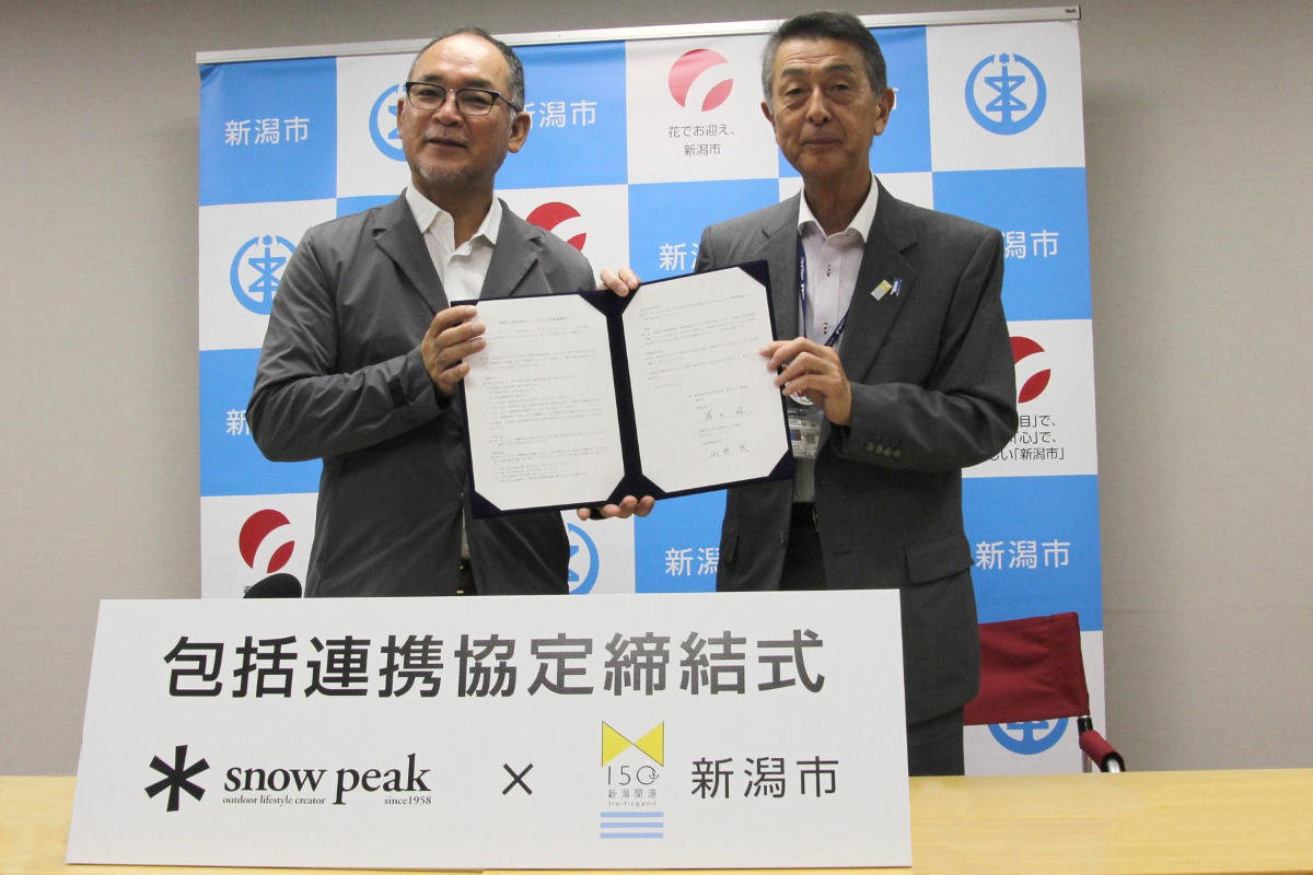 株式会社スノーピーク(代表取締役社長:山井太、本社:新潟県三条市、証券コード:7816)は、新潟県新潟市(市長:篠田昭)との間で包括連携協定を締結しましたのでお知らせいたします。