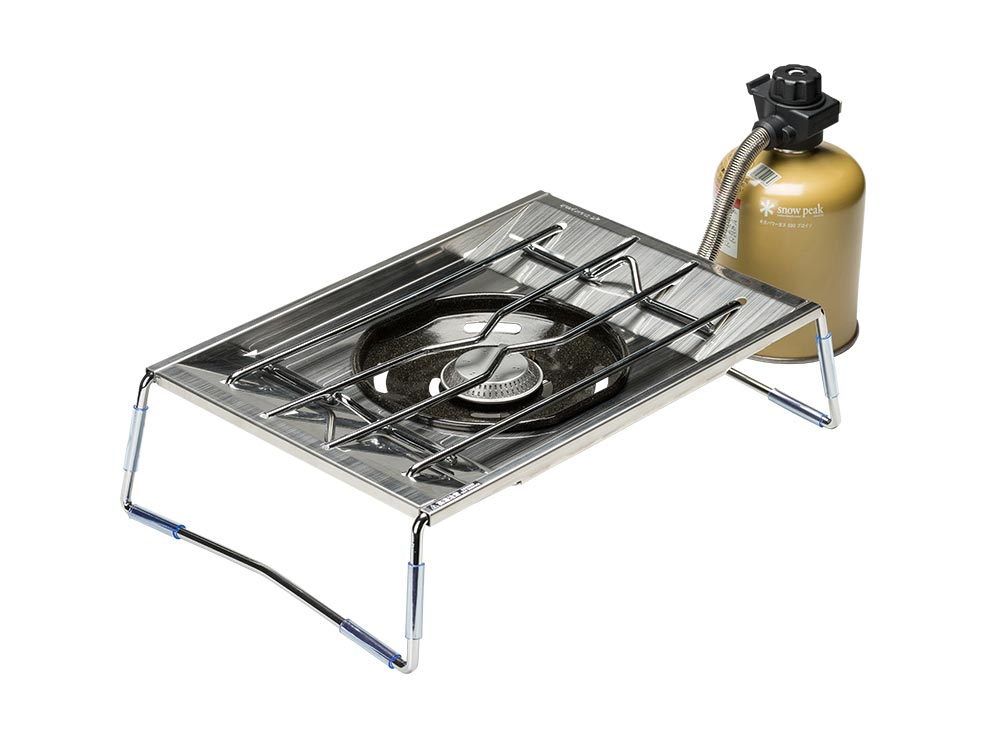 ガスカートリッジを使用することで、手軽に焼料理ができるキャンプ用のコンロ。商品の中核である鋳鉄のプレートをはじめ、シンプルながらしっかりとした構造で、各部品に作りの良さが感じられる。使用から片づけまでの用途を熟慮して設計が良く詰められており、細かいところまで使用者の期待を裏切らない製品になっている。