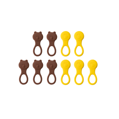 LINE FRIENDSキャラクターのマーキングアイテム。ブラウン5個、イエロー5個の10個セット。他の人のカップに紛れないように、マグカップやシェラカップのハンドルに目印をつけることができます。