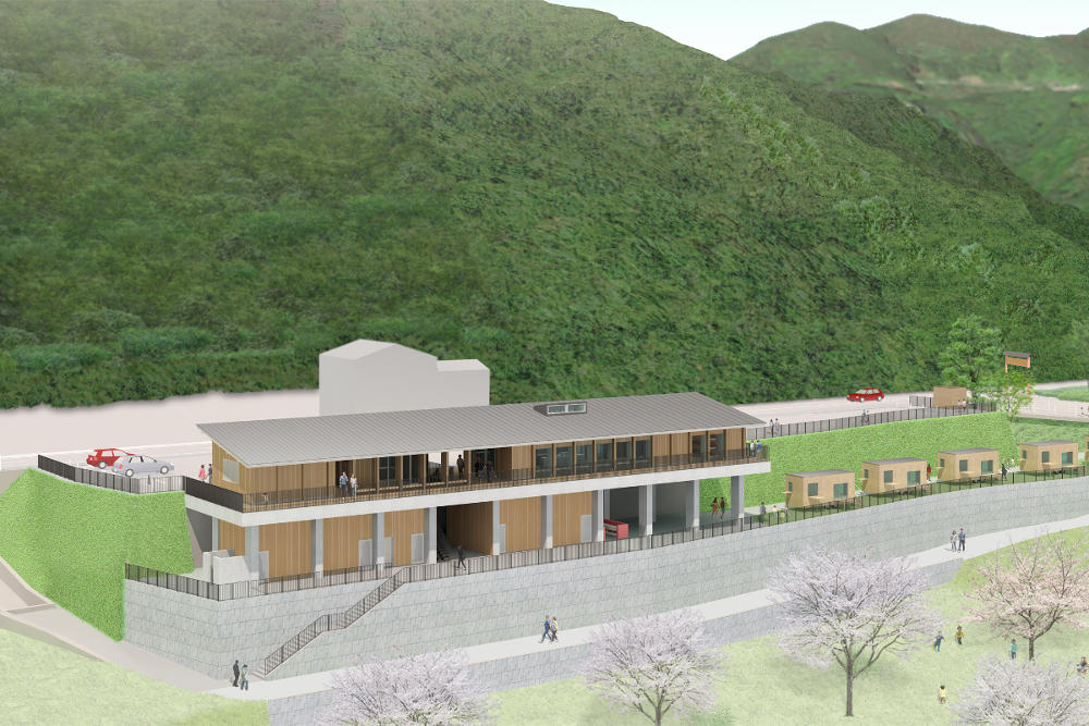 「スノーピークかわの駅おち」は、食物産店舗、宿泊、アクティビティを備えた新業態の観光拠点です。高知県越知町の観光の主役である仁淀川を「路線」に、そして、既設の「おち仁淀川キャンプフィールド」の上流に位置する宮の前公園を「かわの駅」と見立て、新しいコンセプトで開発した観光拠点です。