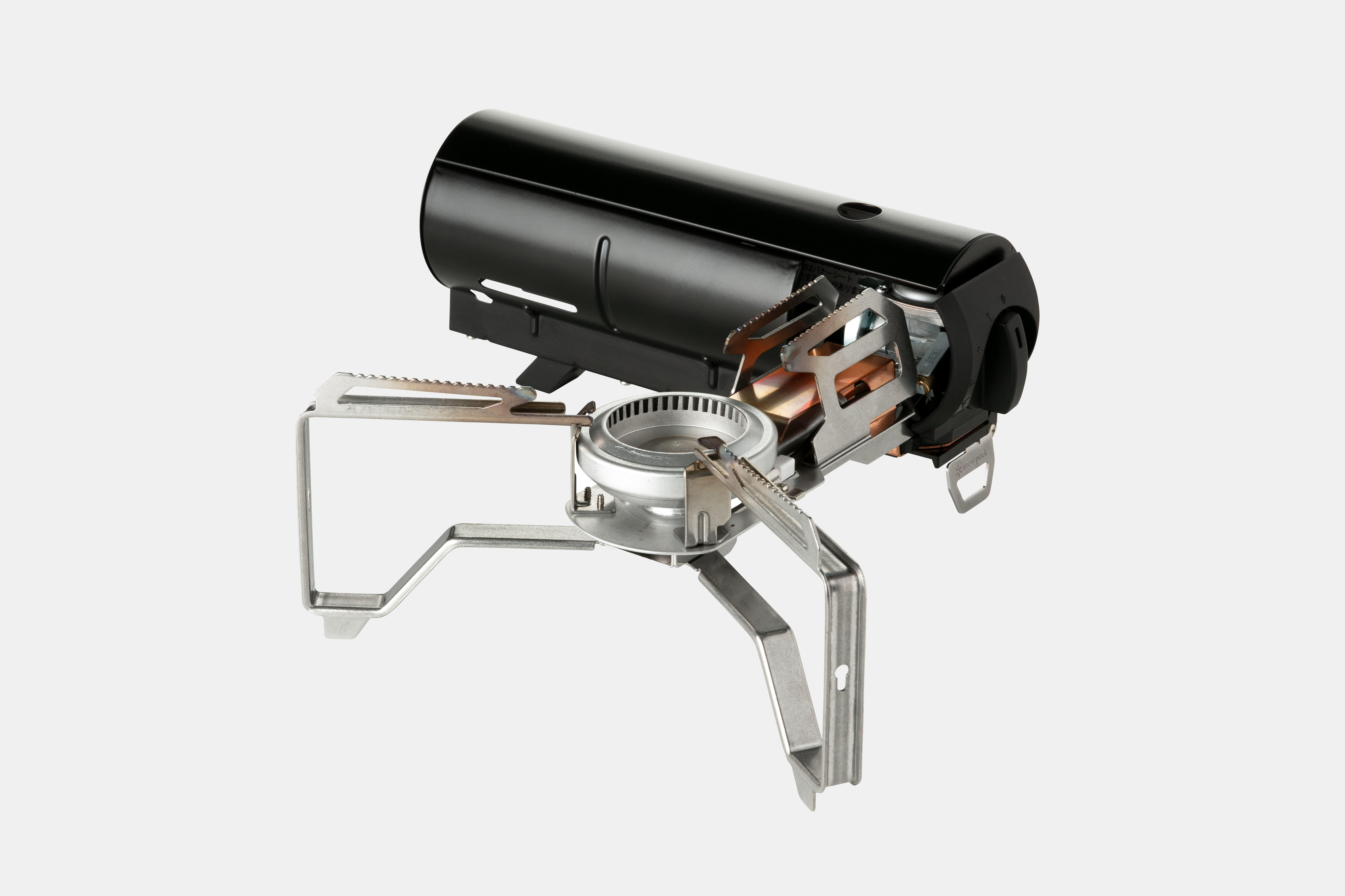 アウトドアでの条件である軽く小さく持ち運べること。このアイデアが自宅での収納に活かされている。ガス缶を外した空間に五徳を折りたたんで収納してしまうため、収納時はすっきりとした円筒になり、今まで場所を取っていた卓上コンロを、インテリアオブジェに変えている。アウトドアとインドア、カセットガスコンロの可能性を拡げたデザインだ。