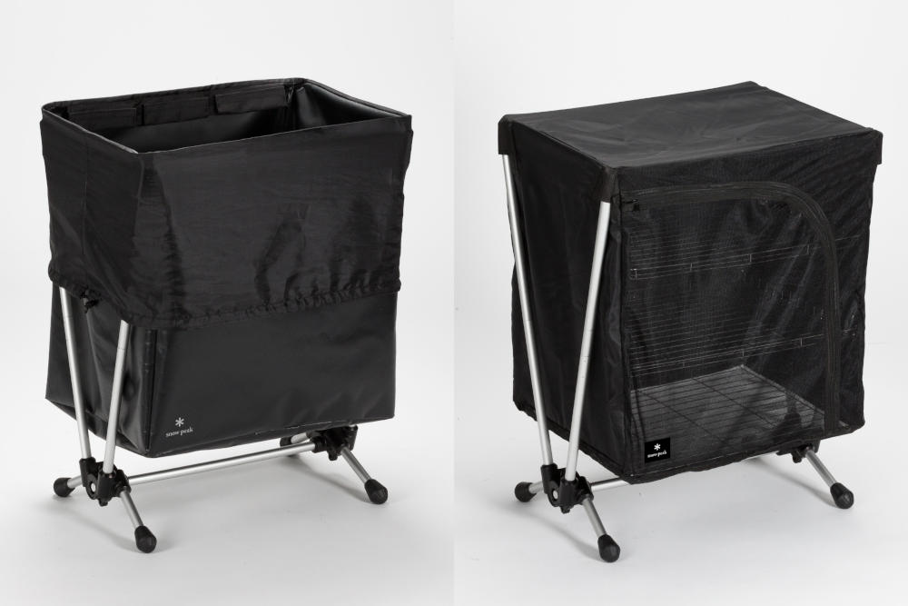 キャンプで出るごみについて、臭い、分別、美観などの課題があるが、このガビングスタンドは、見事にこれらを解決している。内部の3袋の巾着構造と折り返しによって臭いを防ぎ、分別を可能にしている。メッシュラックスタンドは、メッシュ構造が虫の侵入を防ぐだけでなく、食材や食器の通気を促す機能がある。このブラックデザインは、キャンプでの利用だけでなく、日常をアウトドアに変える高機能アイテムだと高く評価された。