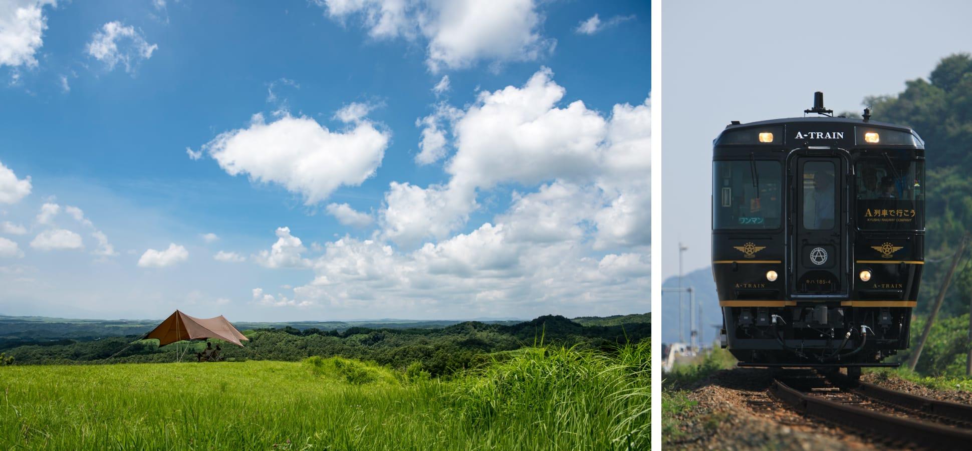 時の経過とともに表情を変える阿蘇の大自然。特急「A列車で行こう」に乗って向かう先には、美しい景色の中での非日常体験が待っています。「阿蘇・瀬の本 野遊びツアー」でしか味わえない特別な体験をどうぞお楽しみください。