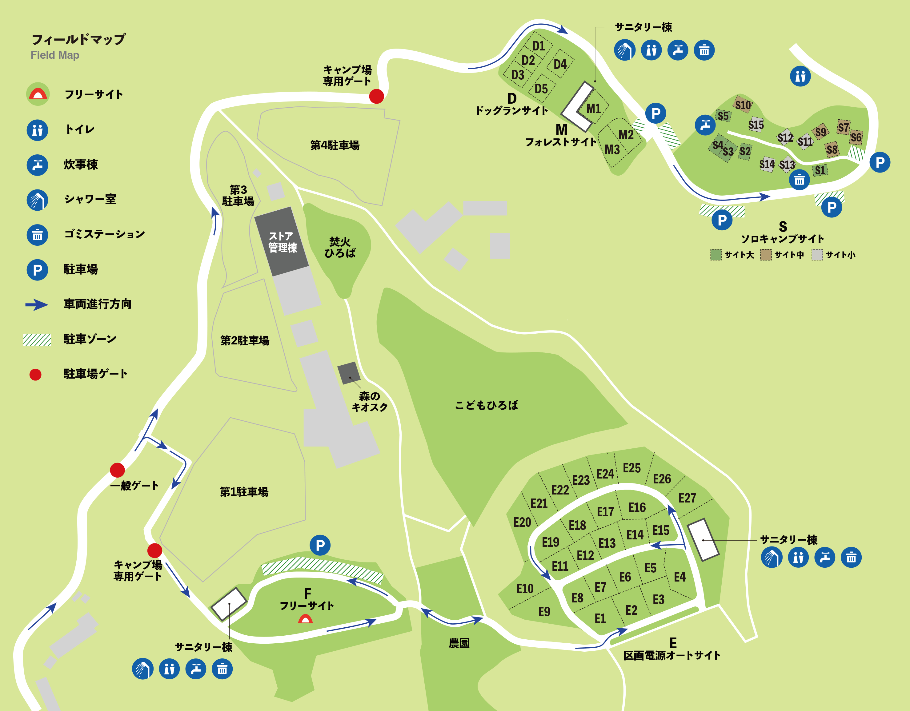 フリーサイト 区画電源オートサイト ドッグランサイト フォレストサイト |