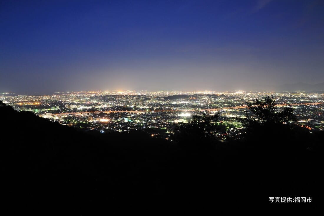 フリーサイト、区画電源サイトからは、福岡市街中心部の夜景を楽しむことができます。都市と自然の距離が近い油山ならではの景色です。