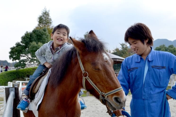 ABURAYAMA FUKUOKAでは子どもたちに大人気な「乳しぼり体験」「乗馬体験」「エサやり体験」を楽しむことができます。