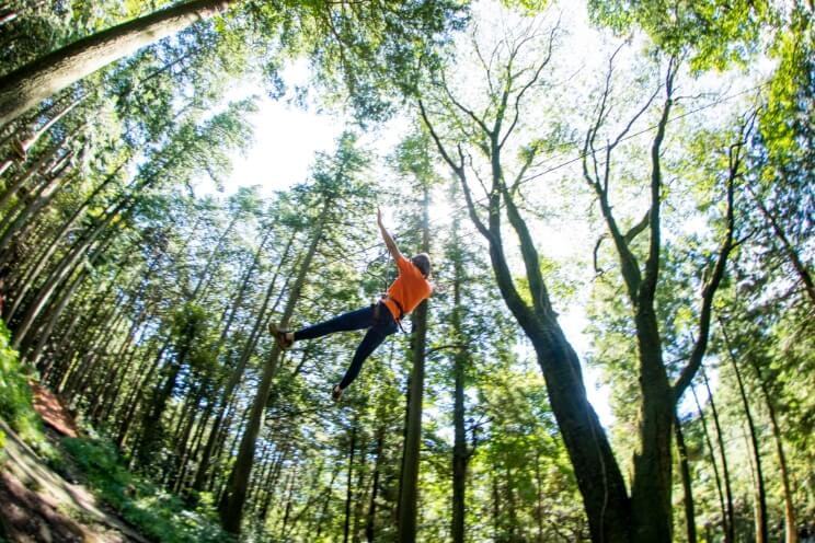 ABURAYAMA FUKUOKA内の「フォレストアドベンチャー」では、森林アスレチックで汗を流すことができます。お子さま向けのネットコースも完備。