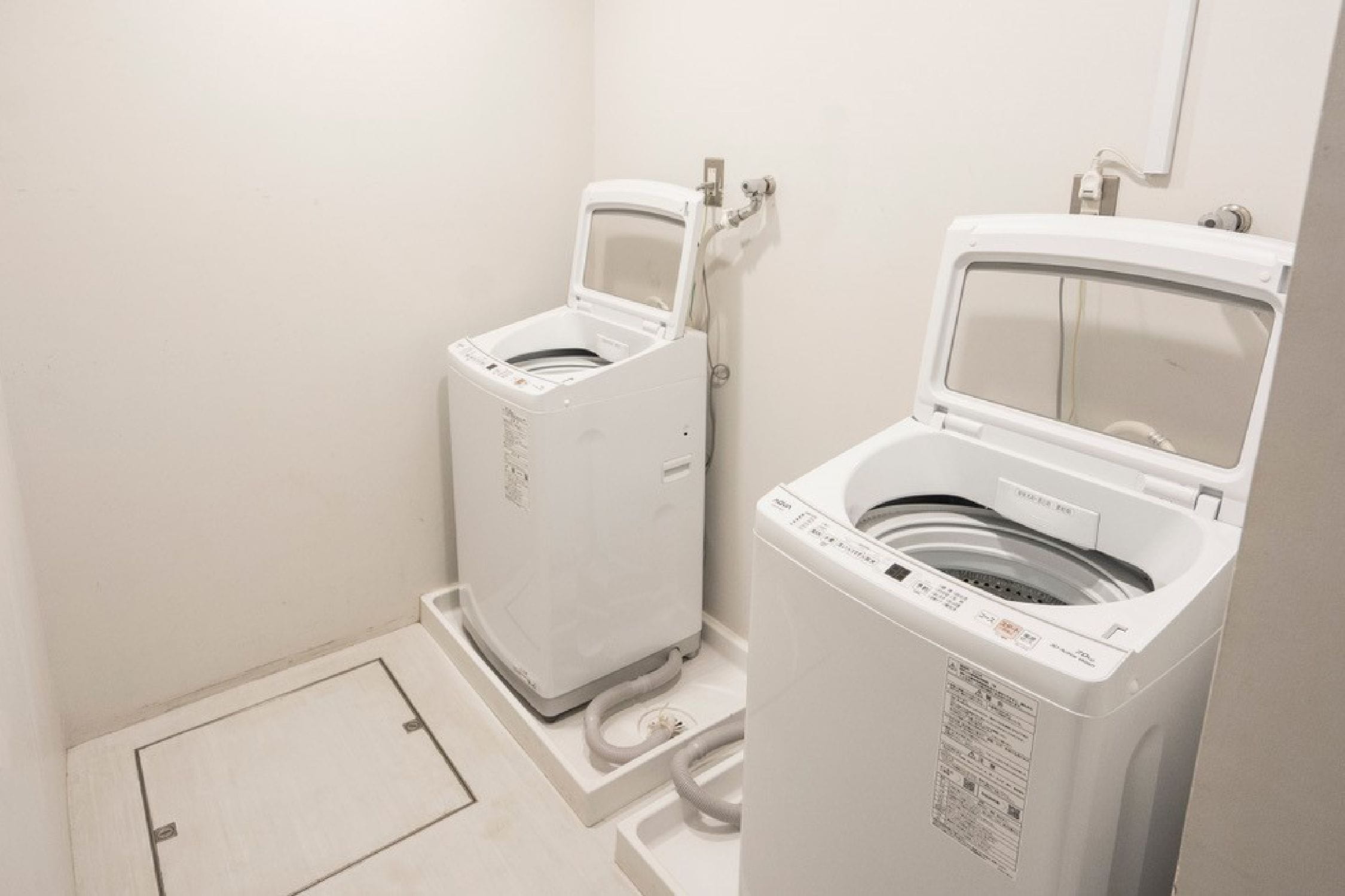 24時間どなたでもご利用いただける洗濯機2台を完備。乾燥機はございません。洗剤は各自ご用意ください。