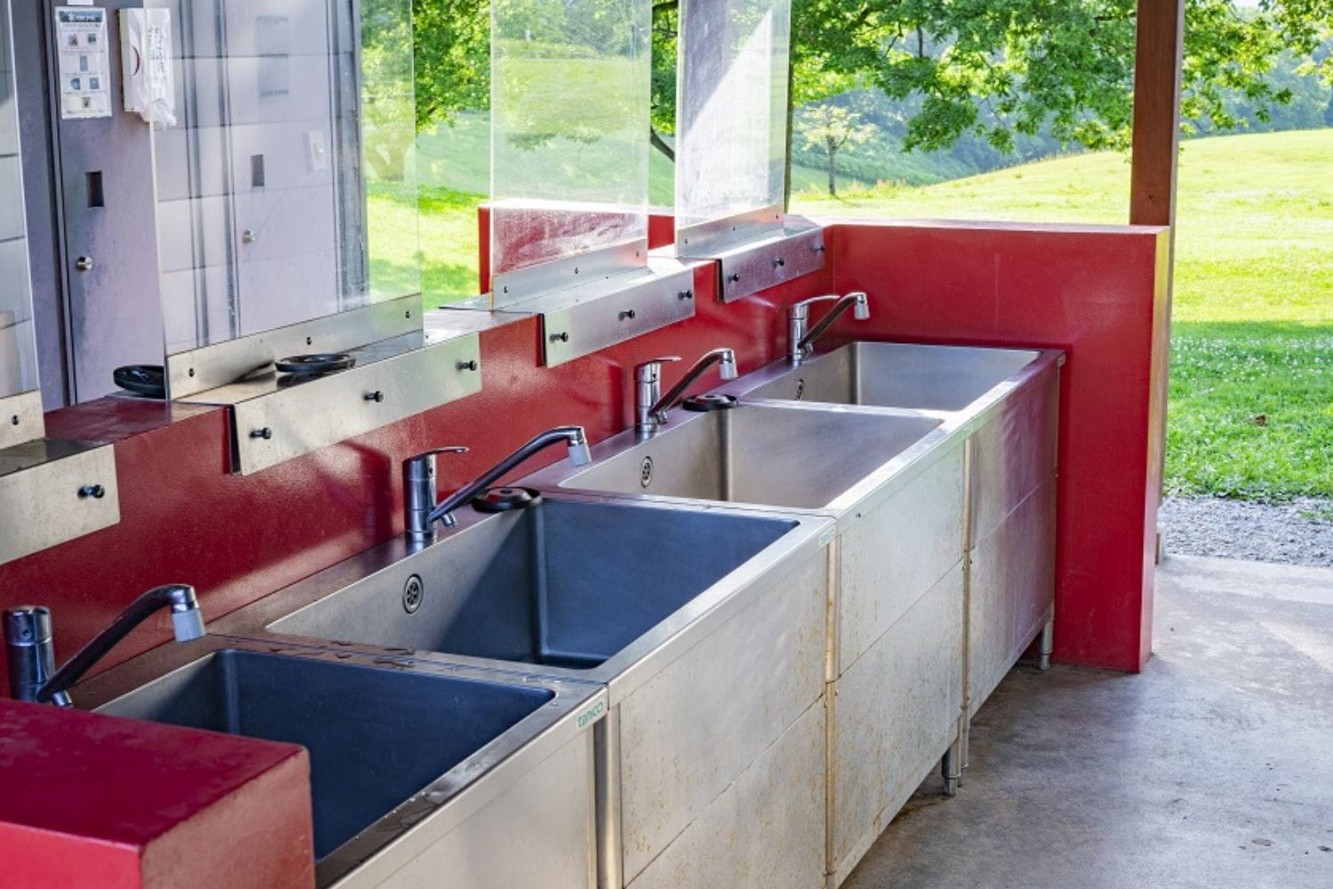 フィールドにある炊事兼洗い場です。水、温水(一部施設除く)とも、ご自由にご利用いただけます。