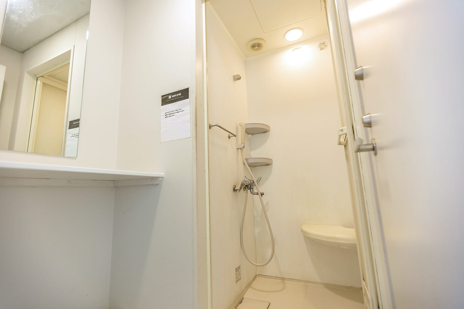 24時間どなたでもご利用いただけるシャワーを完備。シャンプー等は各自ご用意ください。